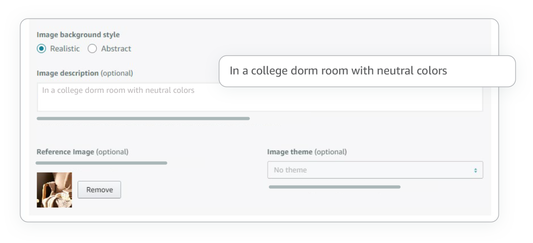 在A+页面添加带有“支持AI”标志的模块后,卖家可灵活选择并按需定制想要生成内容的文本与图像字段,在Gen AI功能中,品牌自有的ASIN码是唯一必填的提示词,其他提示词都是可选项,AI将根据提示生成内容。指令越详细,AI生成的内容就越有结构和明确性,而较少的指令,会给AI更多的创作自由。
